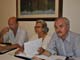 Presidieron el encuentro de izquierda a derecha Fernando Brugman, coordinador del equipo de cultura de la Oficina Regional de Cultura para América Latina y el Caribe de la UNESCO; Alquimia Peña, directora de la fnCl,y Alfonso Gumucio-Dagron, coordinador del proyecto.